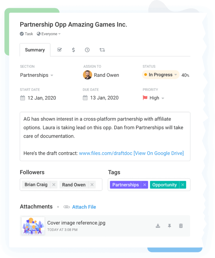 Discuss and comment on tasks to keep all your team’s thoughts in one place. Add followers to keep relevant teammates in the loop