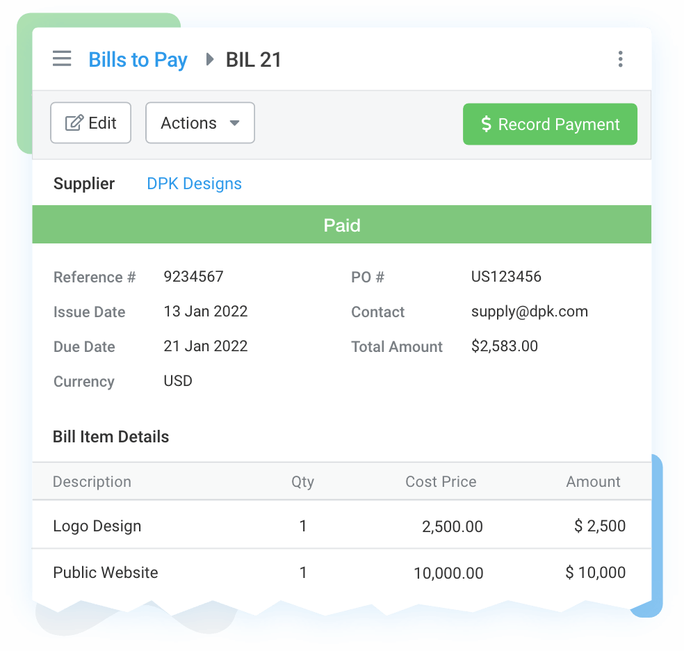 Track and pay bills on time. Get a clear overview of accounts payable and cash flow
