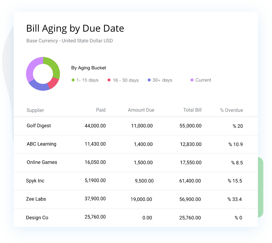 - View the Bills Aging report and see how long bills have gone unpaid.