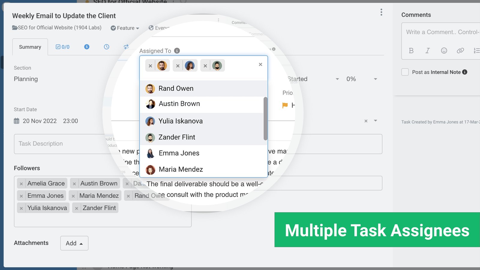 While creating or editing a task in Avaza you can now assign more than one person. Task assignment-related notifications will be sent to all task assignees.