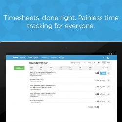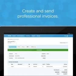 The app includes full desktop-level functionality for managing projects, timesheets, expenses and invoicing.