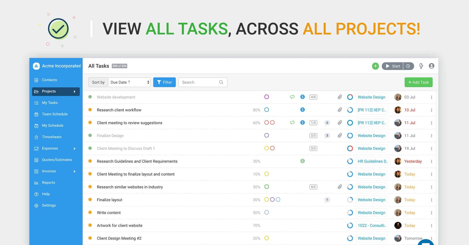 Avaza provides an “All Tasks” view that lets you see tasks across all projects (or filter by project, assignee, client, etc.), which is incredibly useful. For example, a department head can use the All Tasks view to see every task assigned to their team members, regardless of which project it’s part of (ensuring nothing falls through the cracks).