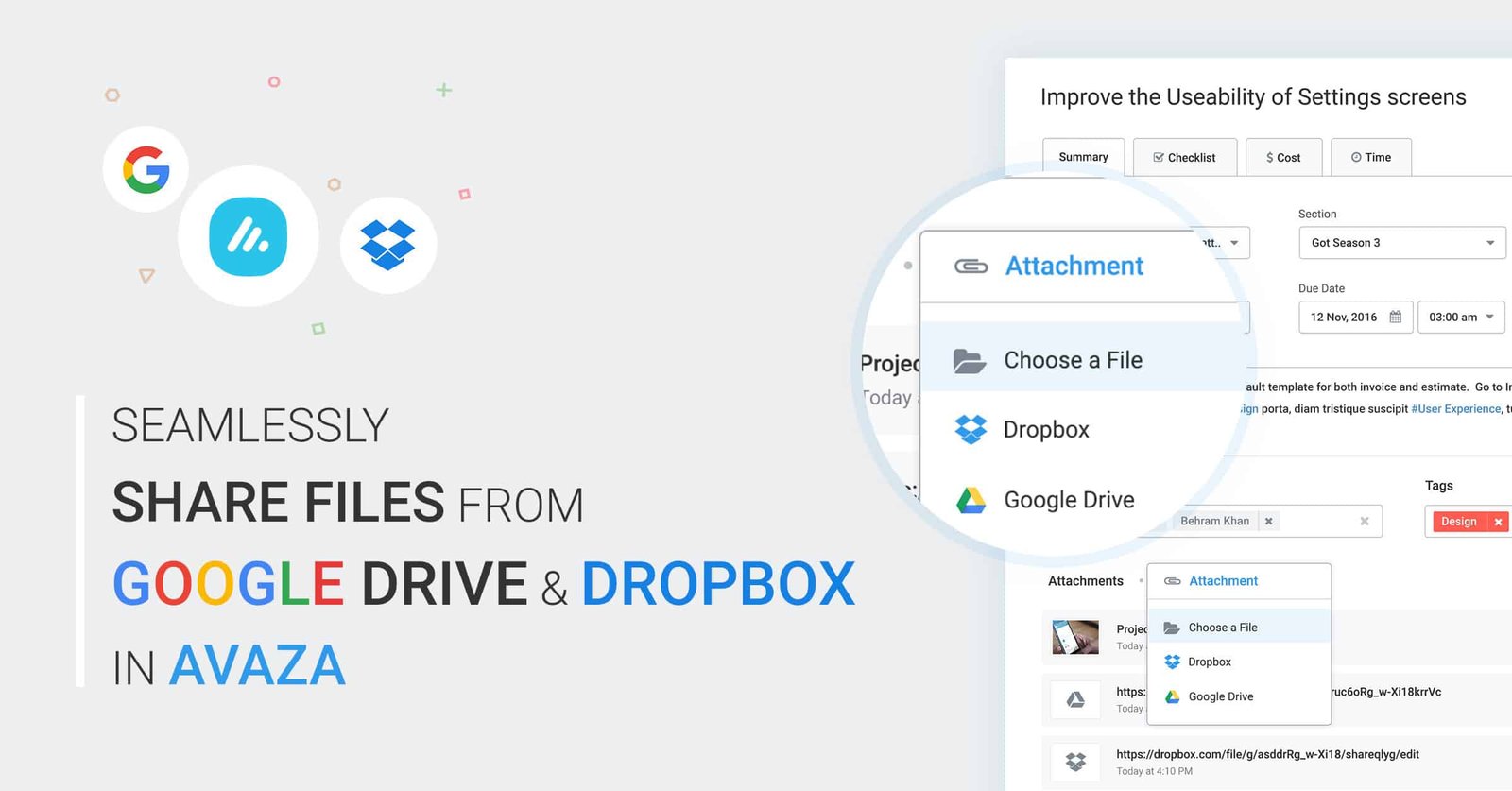 We’re happy to launch our new Google Drive & Dropbox Integrations, which allow you to attach files you already have in your cloud drives to