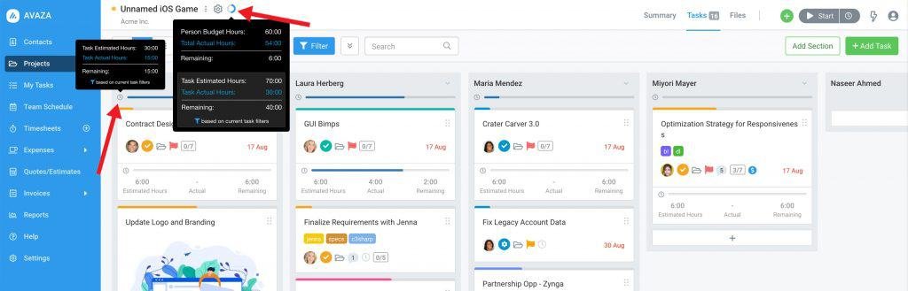 Next, expand the section to see the task-level details and followup with team members that are nearing or over the task estimate