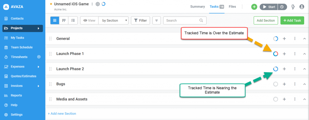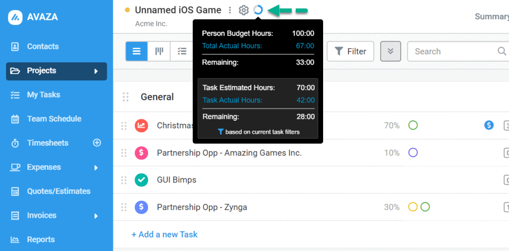 Many professionals & teams track their time, and would like to monitor how close Tasks & Projects are to using up their Time Budgets and Estimated Hours.