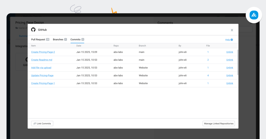 • Link & Unlink: Developers can quickly associate Pull Requests and branches with tasks—or unlink them as needed.