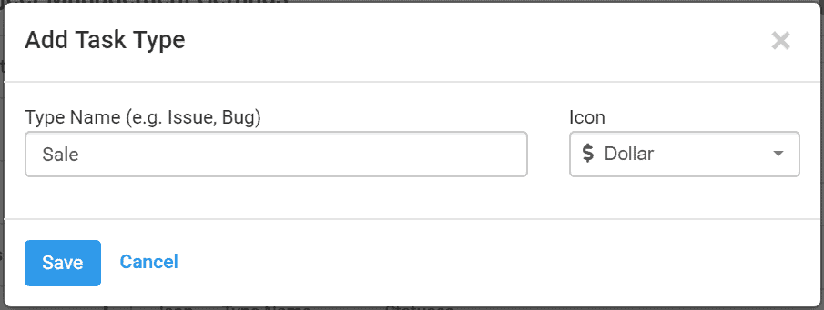Creating Custom Task Types allows your team to differentiate between different types of tasks your team work with. For example, you might create separate Task Types for Issues, Bugs, Change Requests, Campaigns, Leads, Ideas and so forth.