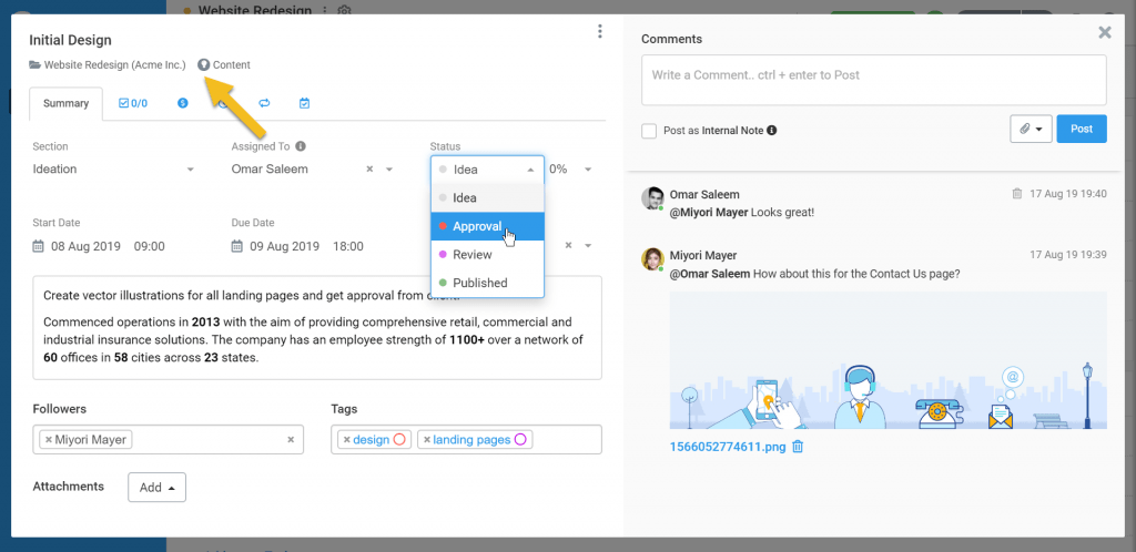 | Marketing Content | Lightbulb | Idea, Copy, Editing, Pending Approval, Published |