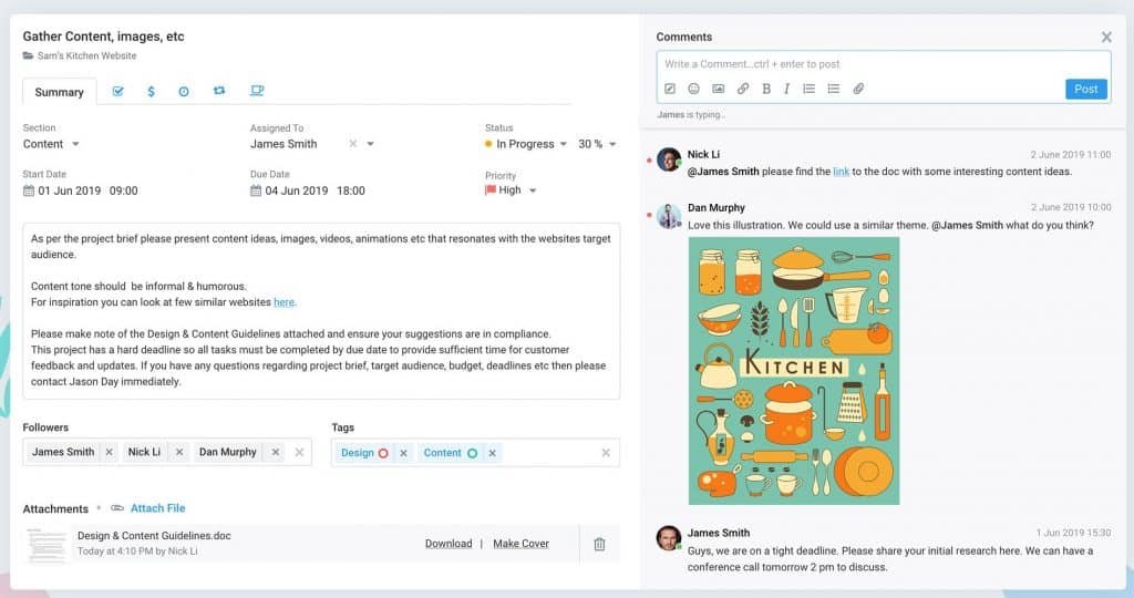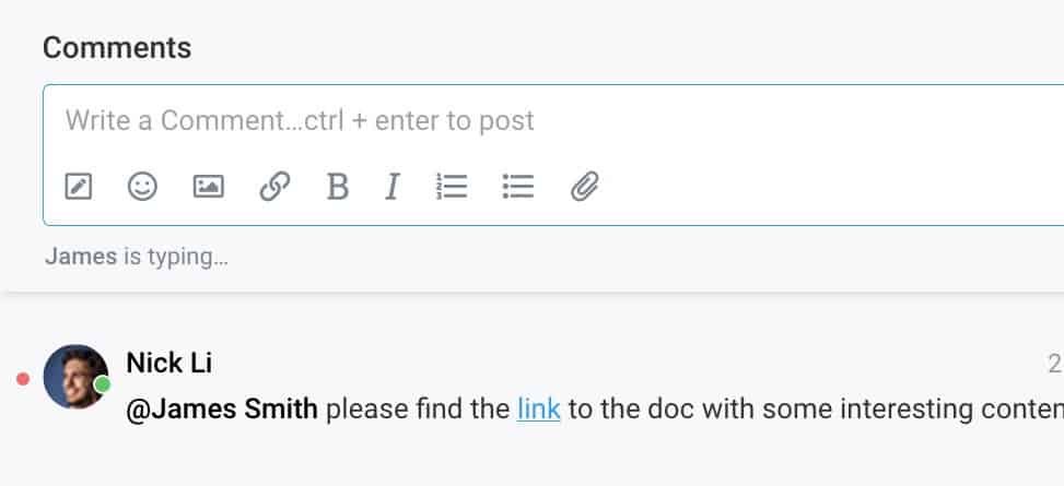If someone is typing a comment on a task you have open, you will see the typing indicator under the comment box. So you know to stick around and converse.