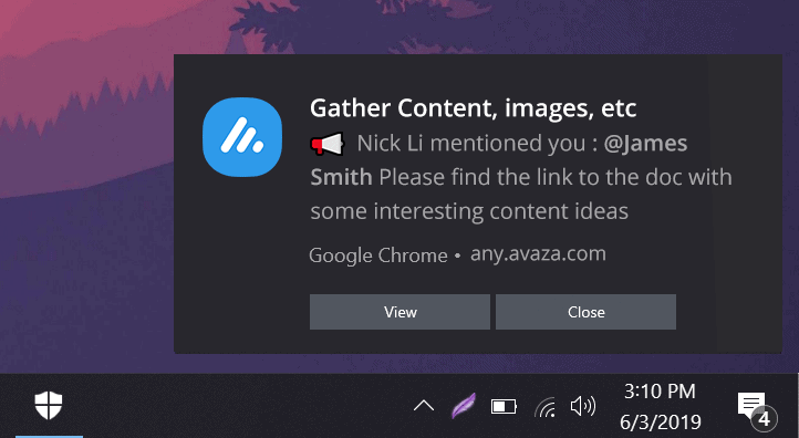 - Web Push notifications are displayed on devices that have enabled Avaza Web Push notifications. The notification is displayed by the operating system in its predetermined location. These notifications are really handy to alert you when you are not actively using Avaza.