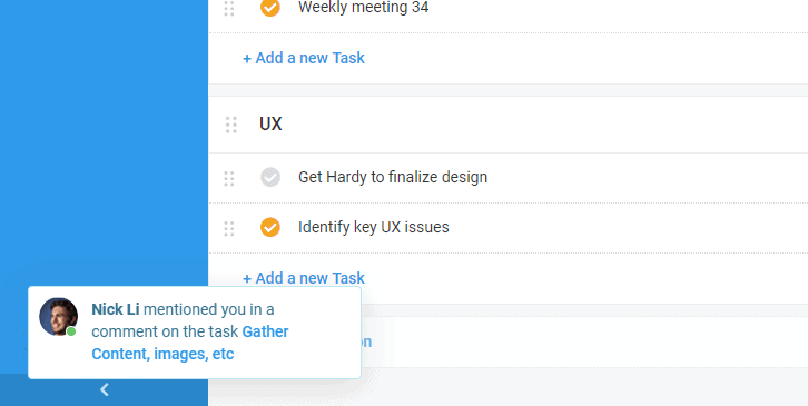 When someone posts a new comment on a task you will instantly see it appear.