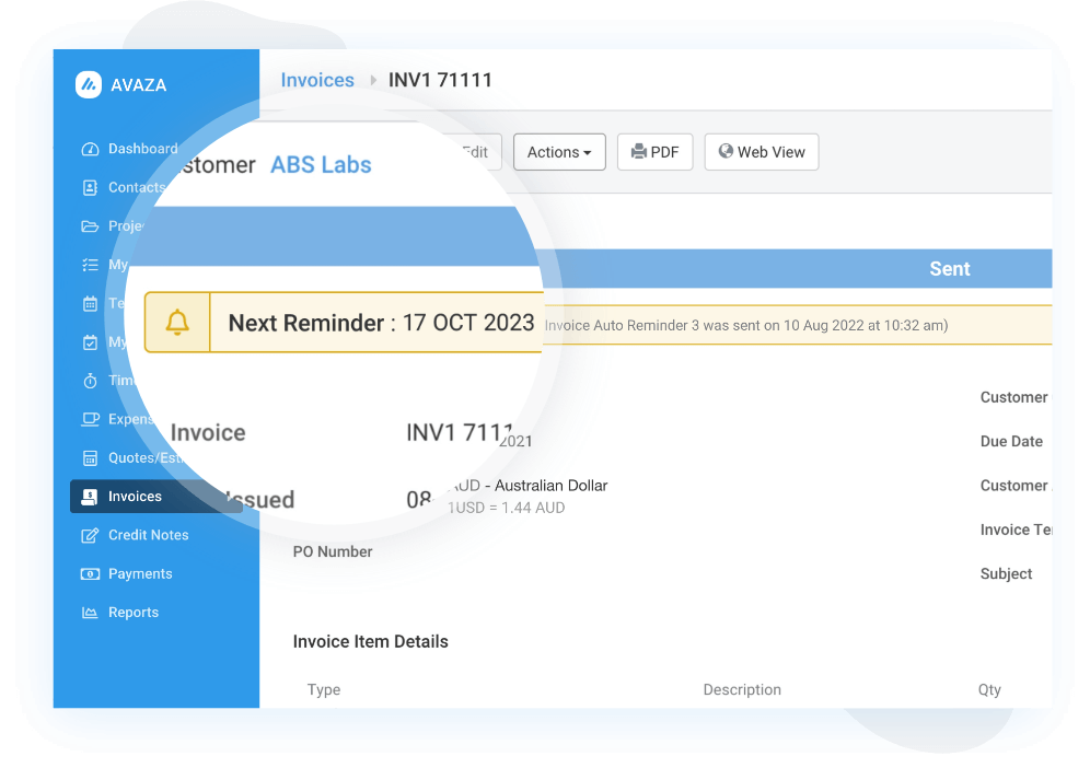 Using Avaza’s Invoice Auto Reminder transforms the tedious and often frustrating task of managing outstanding invoices.