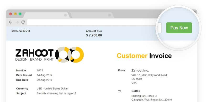 For invoices in supported currencies, a Pay Now button will be displayed allowing your customers to pay you immediately.