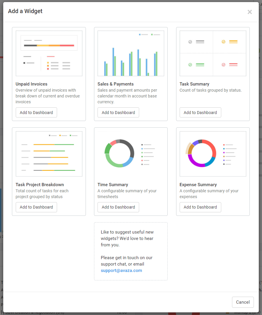 💡 Pro tip (Avaza): Because Avaza’s dashboards sit on a unified stack—projects & tasks, time, expenses, resource scheduling, client portal/chat, and invoicing—you get real-time, drillable views without stitching spreadsheets or maintaining brittle integrations.