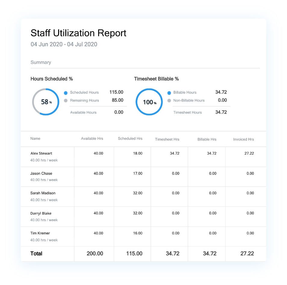 • Team members can transform scheduled assignments into timesheets.